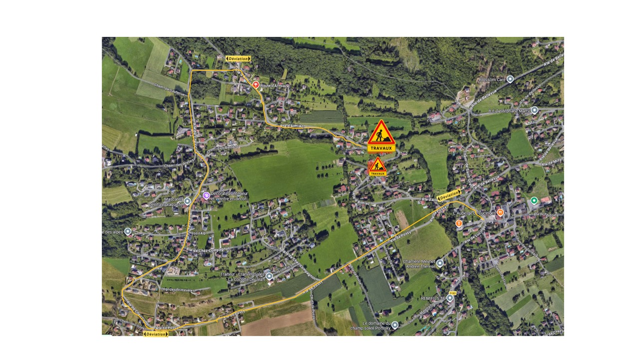 Pour rejoindre Lucinges, merci d’emprunter l’itinéraire de déviation suivant par Cranves-Sales :
