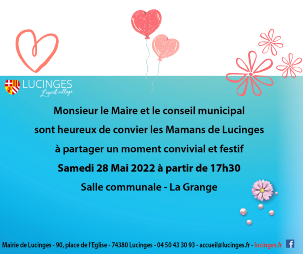A l’occasion du buffet de la fête des mères organisé par la mairie le samedi 28 mai à partir de 17h30, nous sommes à la recherche d’artistes souhaitant exposer à la salle La Grange pendant la durée de l’évènement. Vous êtes intéressées ? Nous vous remercions de bien vouloir contacter la mairie au 04 50…